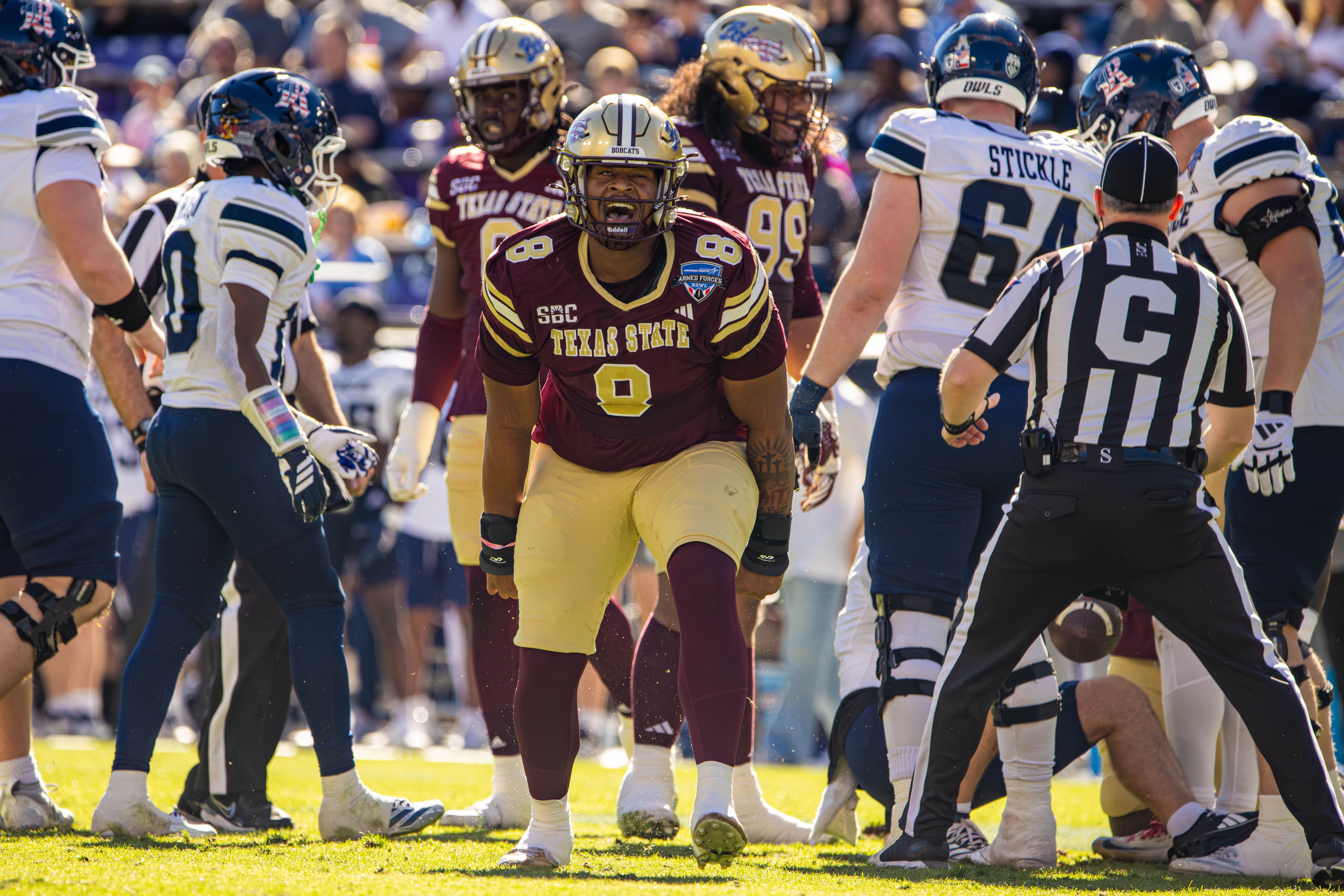 Texas State’s defense forced three takeaways, racked up 13 tackles for loss, and held Rice to just 195 total yards — with 128 of those coming on the Owls’ two scoring drives.