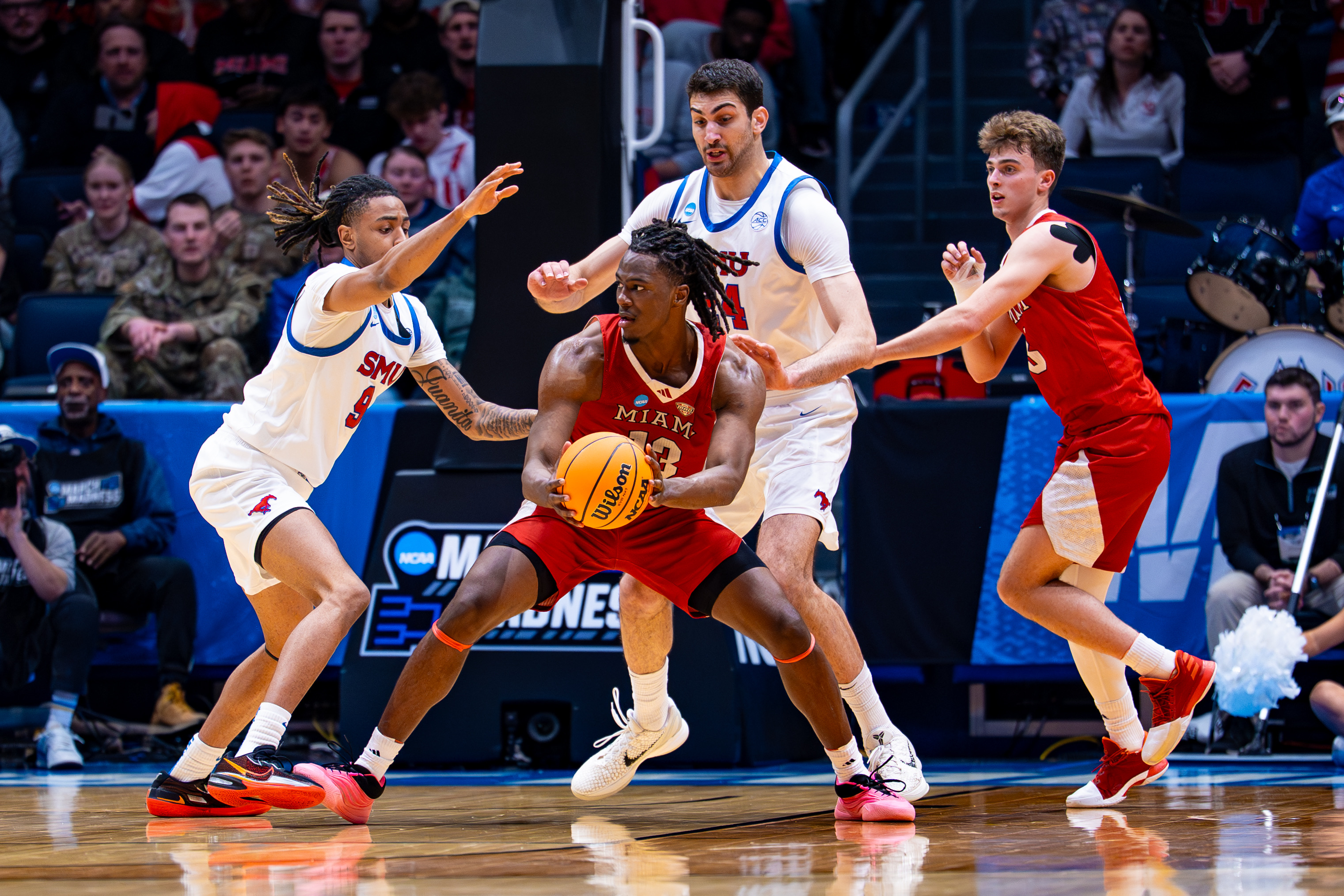 Brant Byers was right behind him with 19 points, including four 3-pointers, and Luke Skaljac added 17 of his own. Almar Atlason chipped in 12 points off a pair of second-half threes that stretched Miami's lead to 13. Altogether, the RedHawks launched 41 three-point attempts and hit 16 of them — a barrage that SMU simply had no answer for.