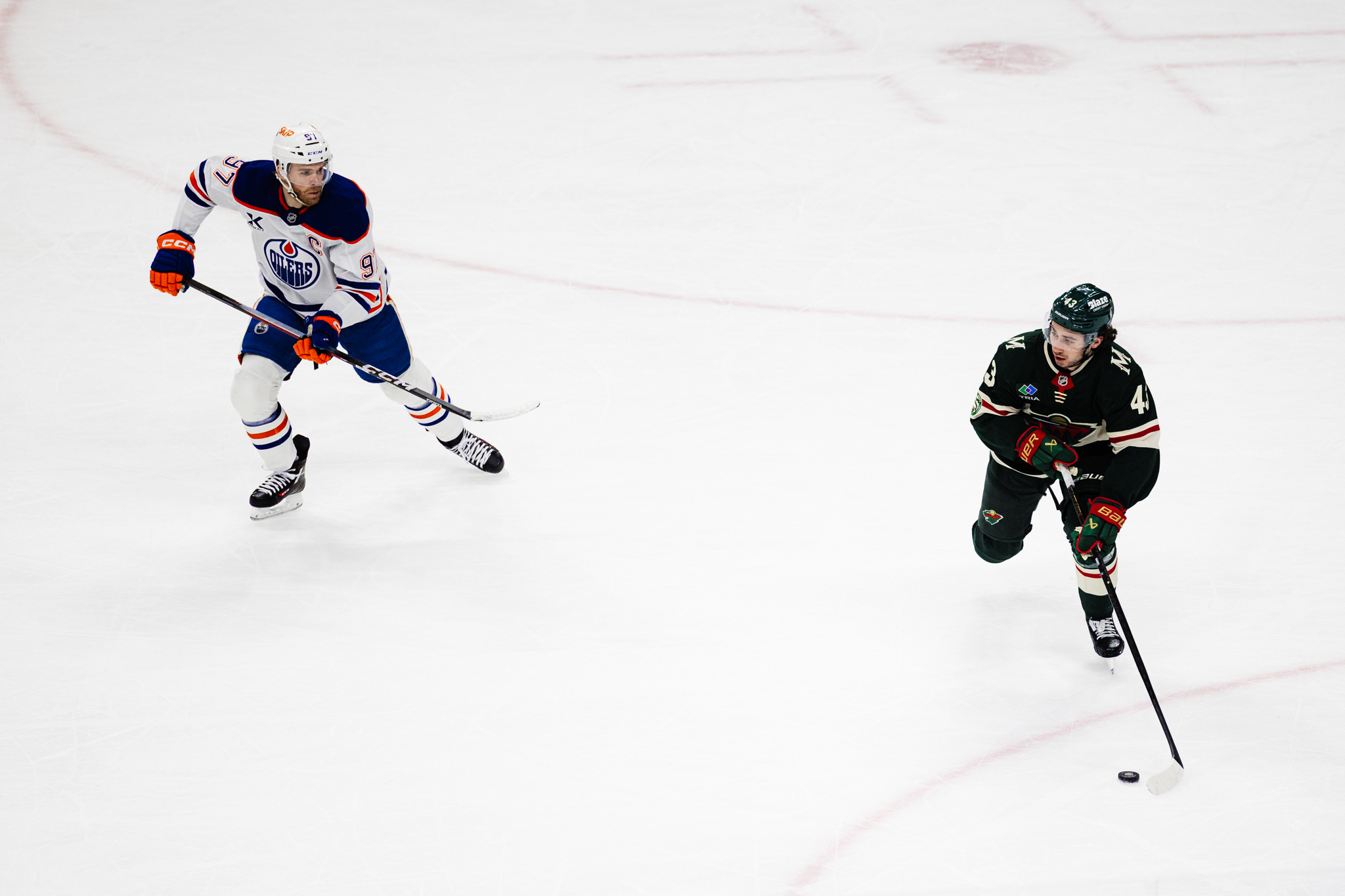 A Leon Draisaitl double minor — cross-checking followed by unsportsmanlike conduct for letting the ref hear about it — gave the Wild a four-minute runway, and Boldy cashed again. His one-timer from the right circle doubled the lead and had Edmonton wobbling like they’d just taken a heavyweight combo.
