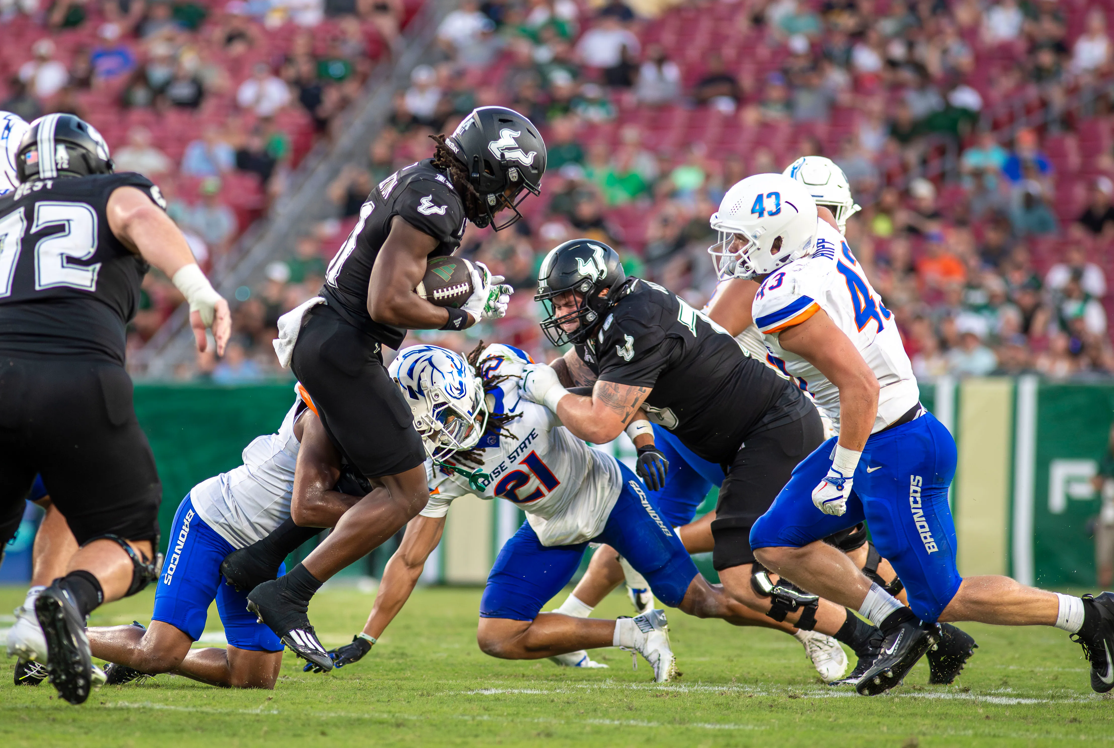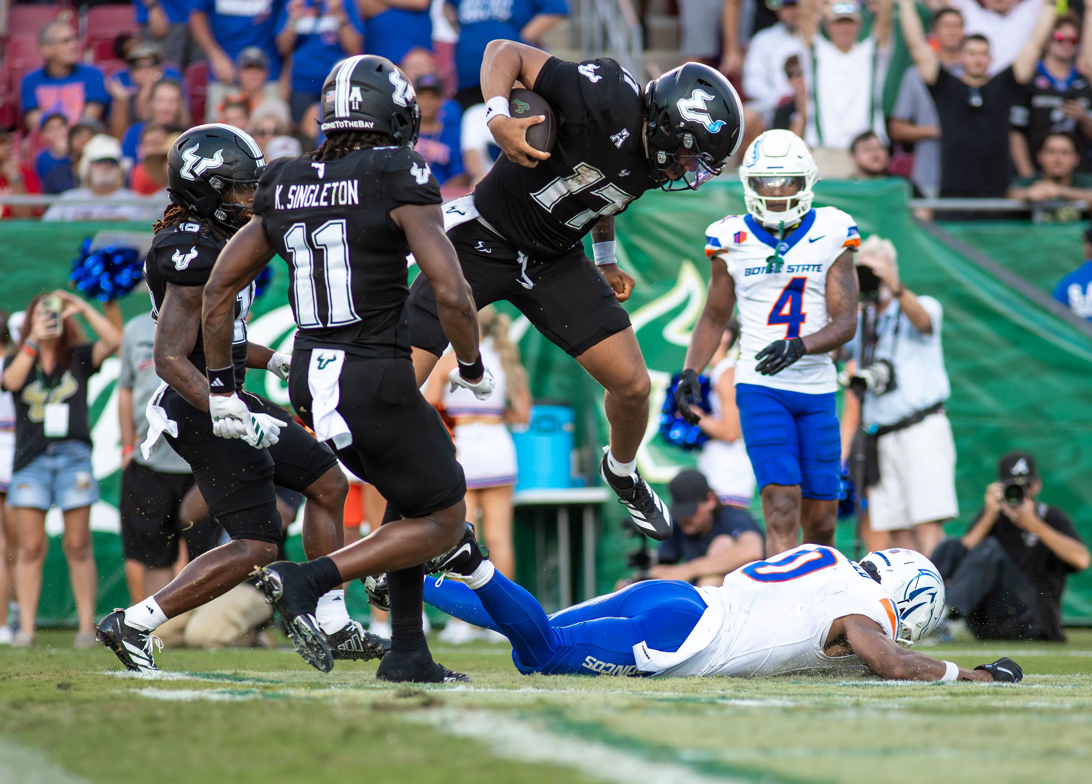By the time the final whistle blew in Tampa on Thursday night, the message was loud and clear: South Florida football is done being a punchline. Under the lights at Raymond James Stadium and rocking their “Back in Black” threads, the Bulls slapped No. 25 Boise State around on national television, stomping the Broncos 34-7 and delivering their first Top 25 win in nearly a decade.