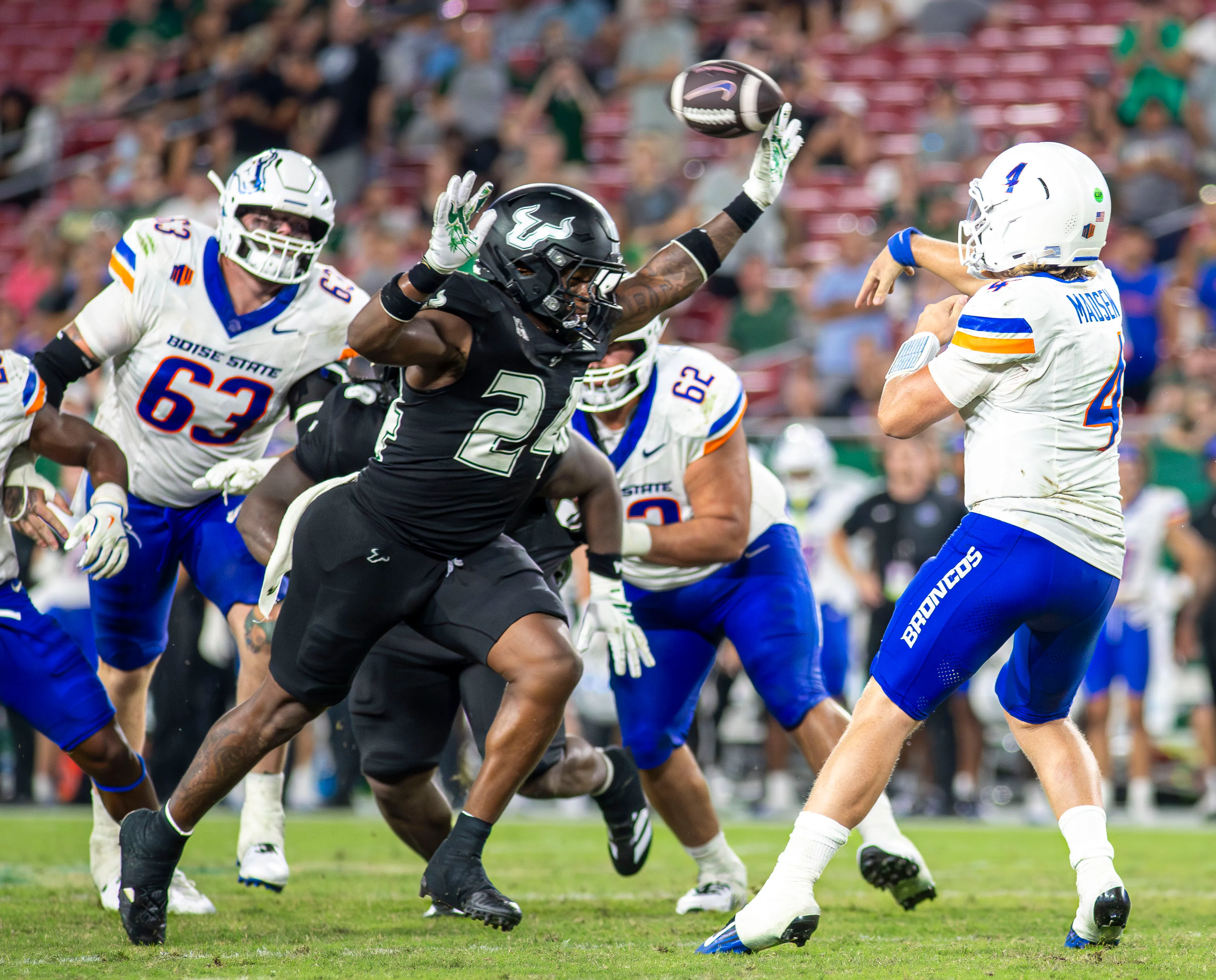 For all the praise the offense earned, the real MVP might’ve been the USF defense. Three forced fumbles (from a Boise team that lost only five all of last season)? That’s no coincidence. That’s ball-hawking, swarming, punch-you-in-the-mouth defense.